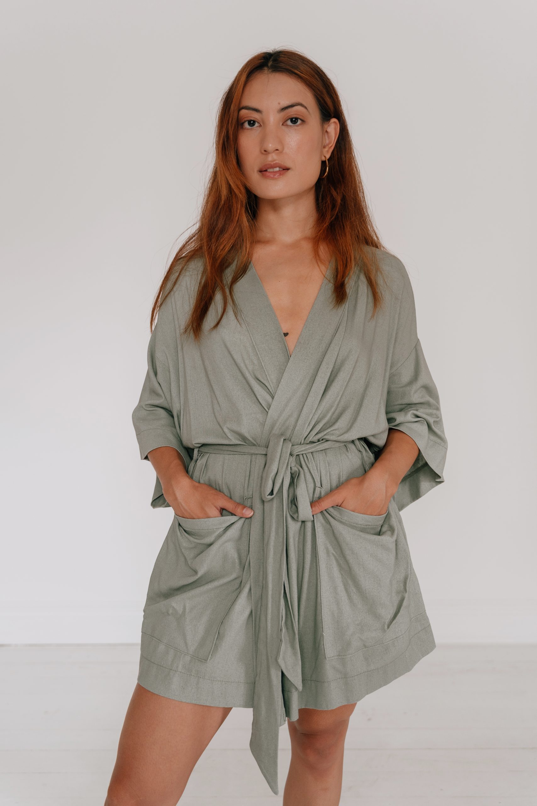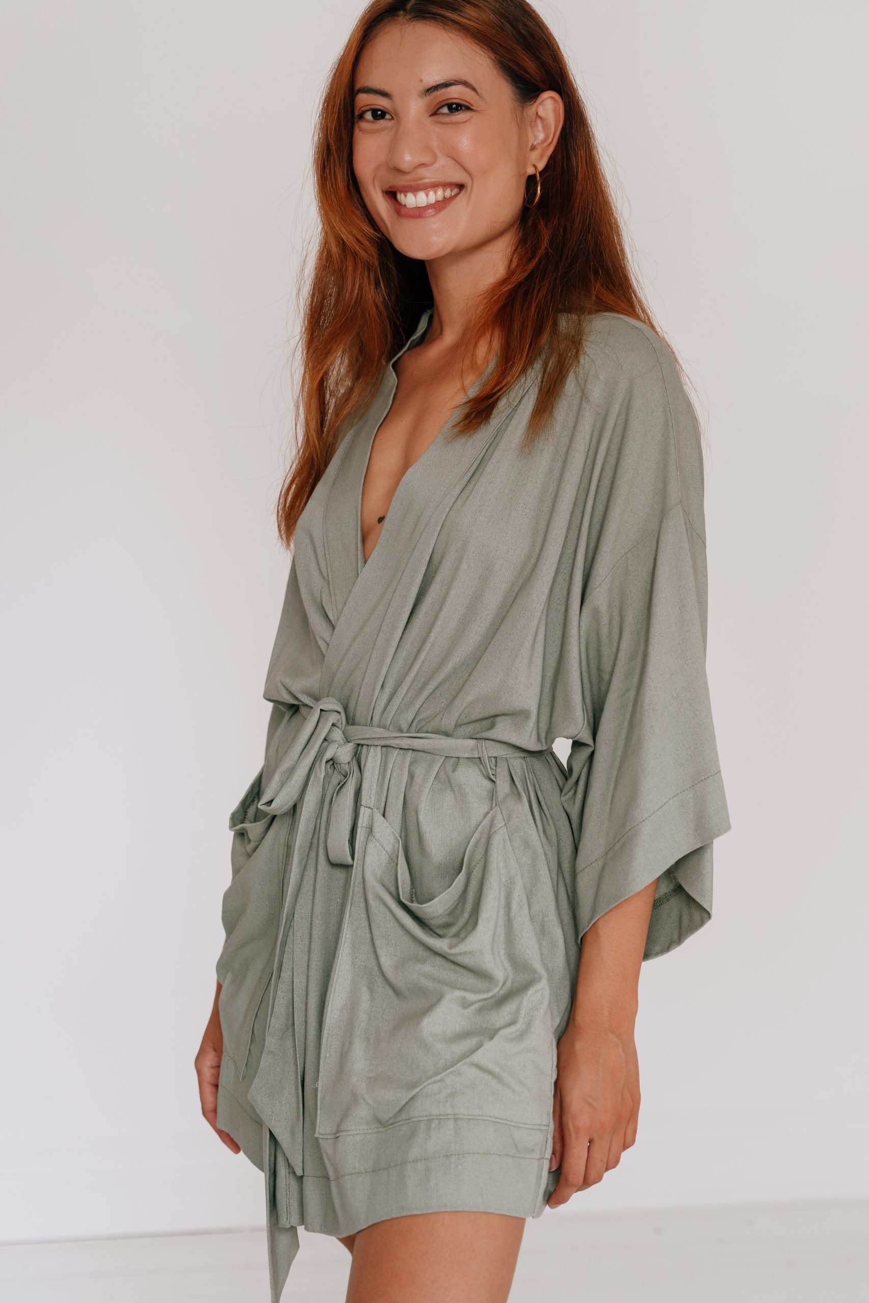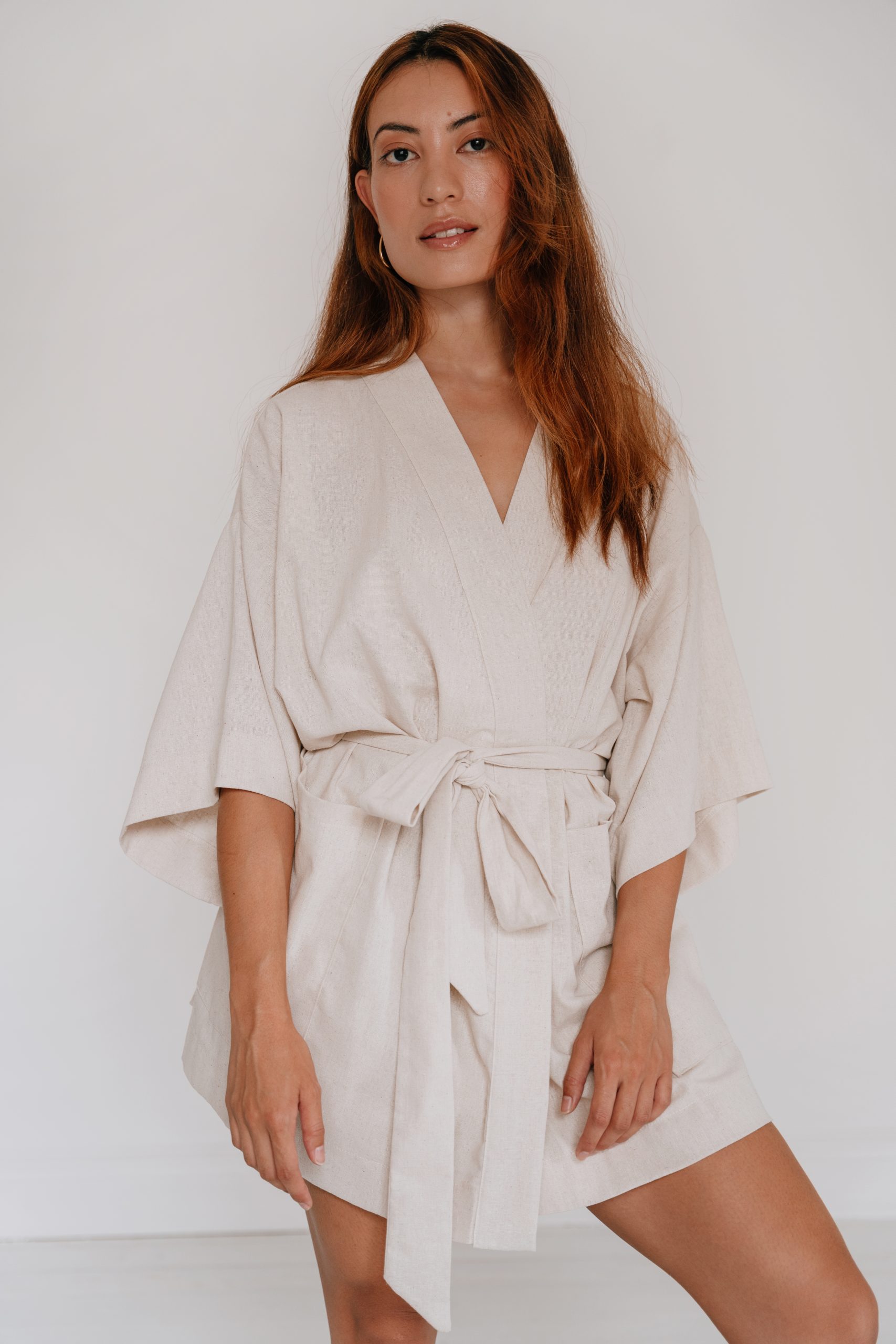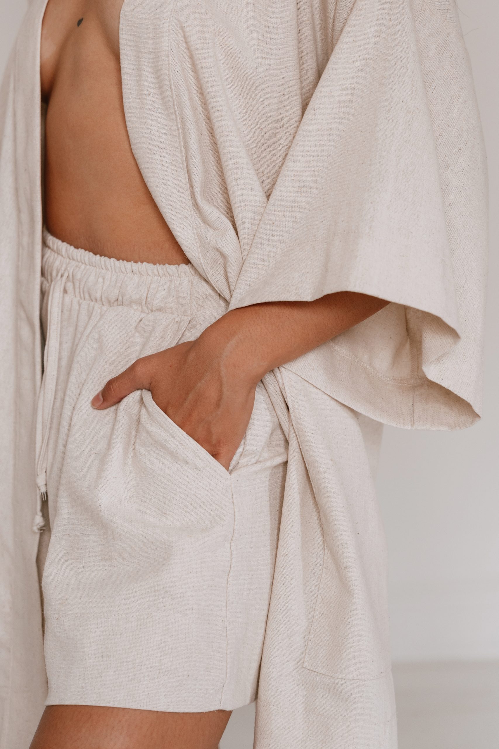 Japanese style kimono deigned to wear as a top or mini dress paired with the matching shorts underneath