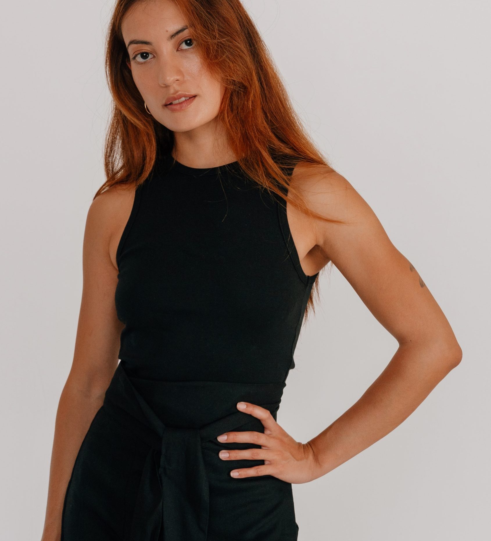 The Tank Top offers endless versatility for any outfit. Featuring a stretchy fabric that still gives you that fitted, body-hugging feel. Definitely a wardrobe staple, pair this tank with your go-to jeans and sneakers for a casual look or with trousers and a blazer for a more elevated and professional style.